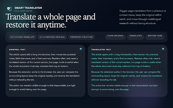 Silence Translator เป็นส่วนขยายเบราว์เซอร์ฟรีที่ออกแบบมาสำหรับ Chrome ซึ่งช่วยปรับปรุงวิธีที่ผู้ใช้โต้ตอบกับข้อความในหน้าเว็บต่างๆ เครื่องมือนี้ช่วยให้การแปลทันทีสำหรับข้อความที่เลือก ทำให้เข้าใจภาษาต่างประเทศได้ง่ายขึ้นในขณะนั้น ด้วยอินเทอร์เฟซที่ใช้งานง่าย มันรวมเข้ากับประสบการณ์การท่องเว็บได้อย่างราบรื่น ช่วยให้การแปลเกิดขึ้นแบบเรียลไทม์โดยไม่ต้องใช้แอปพลิเคชันภายนอก